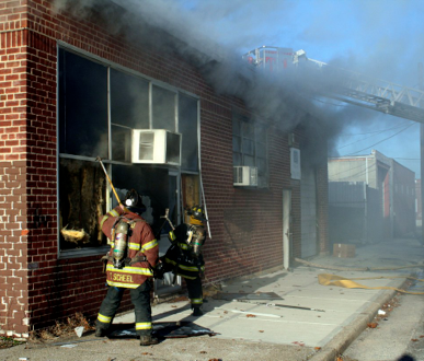 Pictured Here: Darkwater Systems Owner John Munz (right) volunteering with Hempstead Fire Department at the scene of a building fire in Spring 2008.